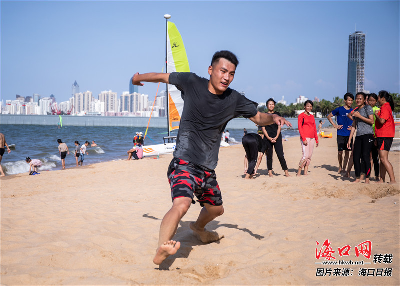8月14日,记者来到西秀海滩,看到有十几名队员正在做折返跑训练。据了解,这些队员是海南省体育职业技术学院的学员,当日正在做日常体能储备训练。